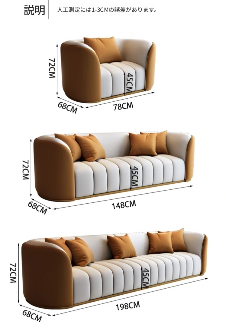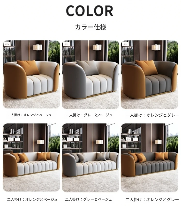 1+1+3人ソファ+テーブルセット米白+オレンジ