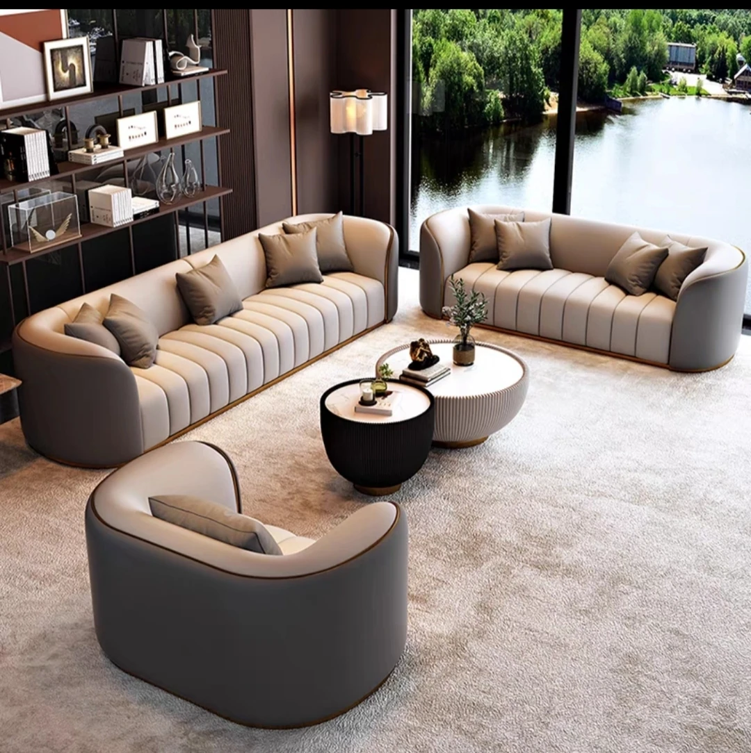 1+1+3人ソファ+テーブルセット米白+淡い灰色