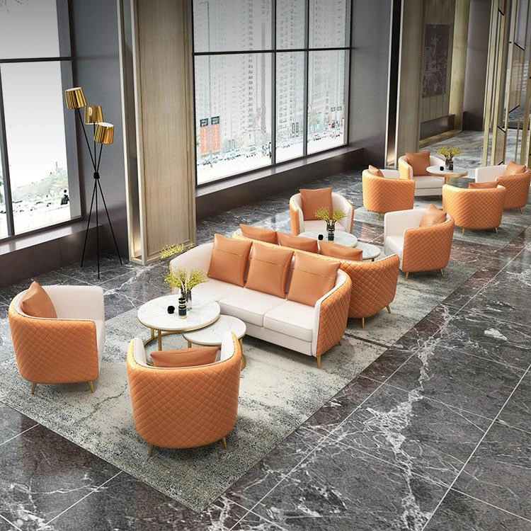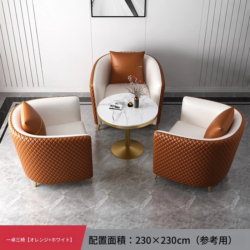 北欧スタイルの皮革ソファ - 美容院やサロンに最適なリラックス空間を演出!商談や接客にぴったりなデザイン性と快適性を兼ね備えたソファセット。おしゃれで機能的な空間を手に入れましょう!