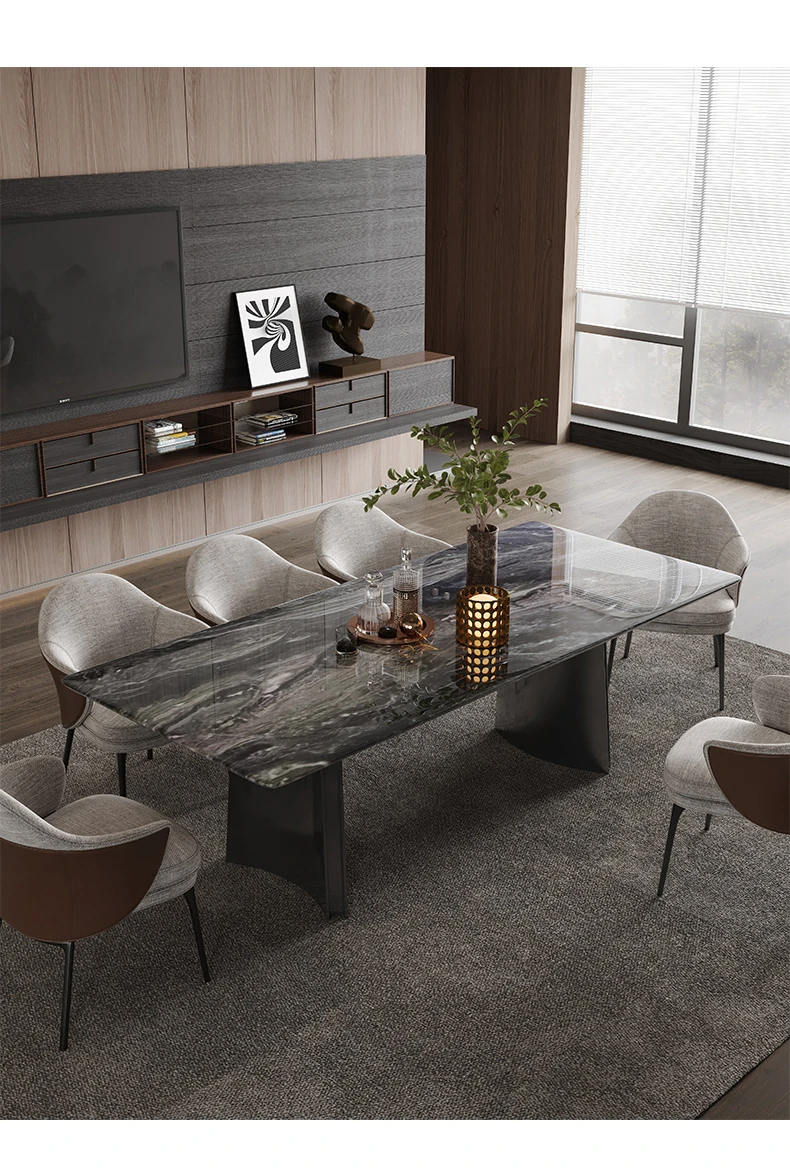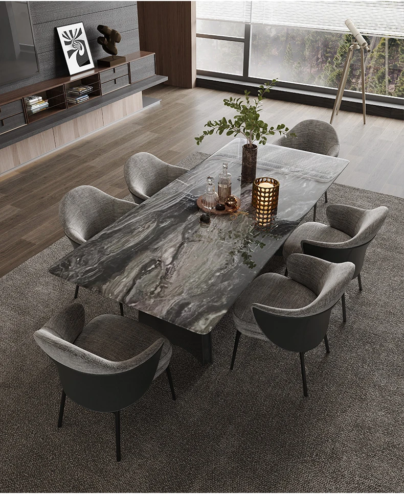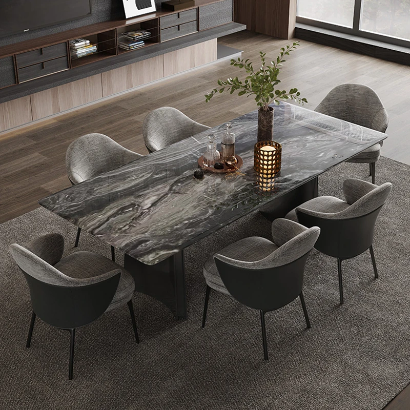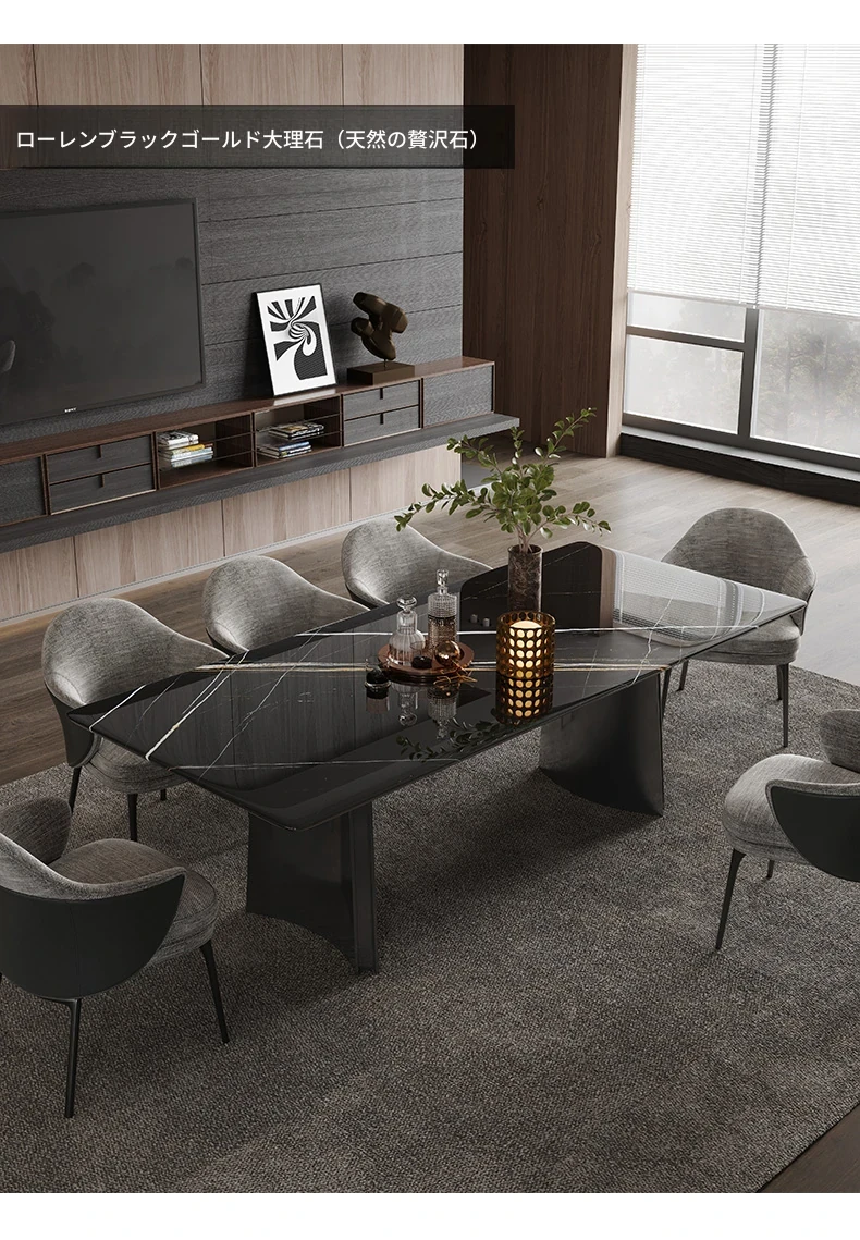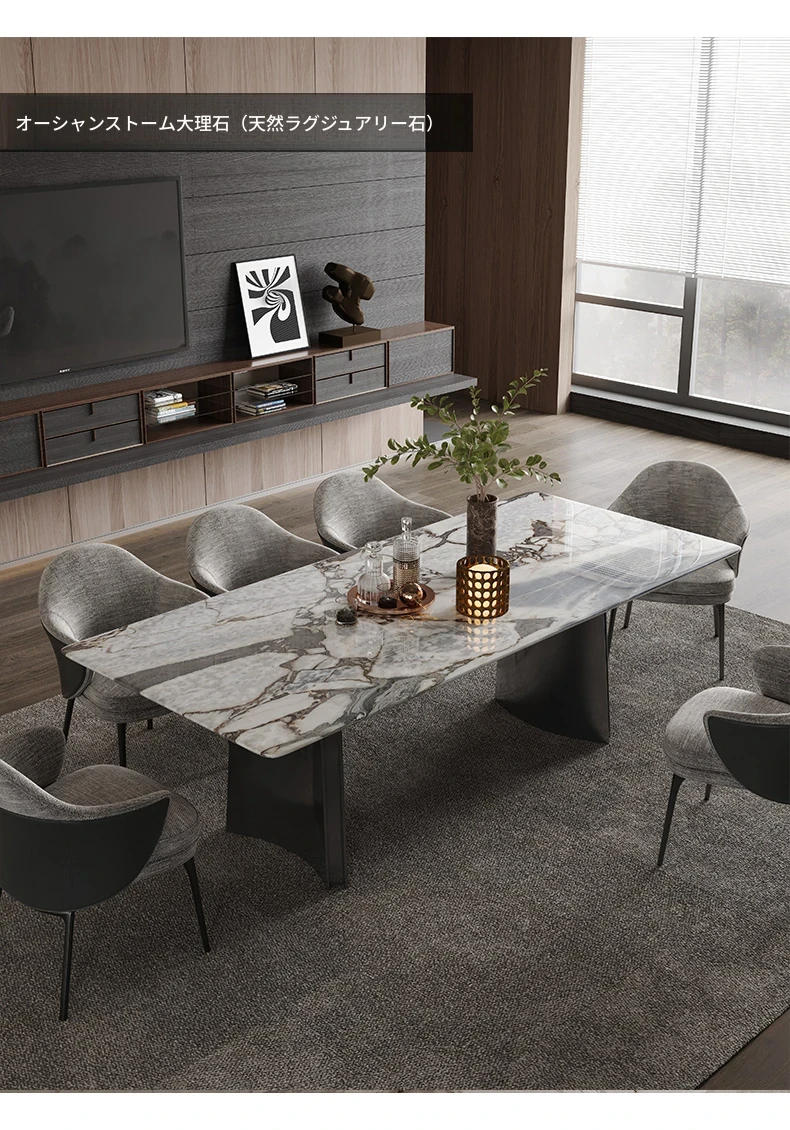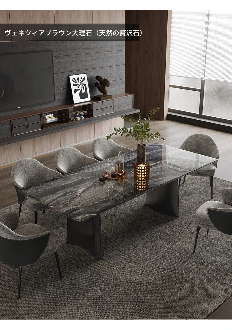 オレオグレー天然大理石ダイニングテーブル|豪華な長方形デザイン|イタリアンスタイルのモダンな住空間を演出|洗練されたデザイナー家用家具