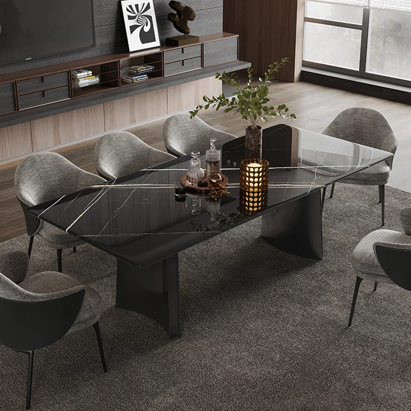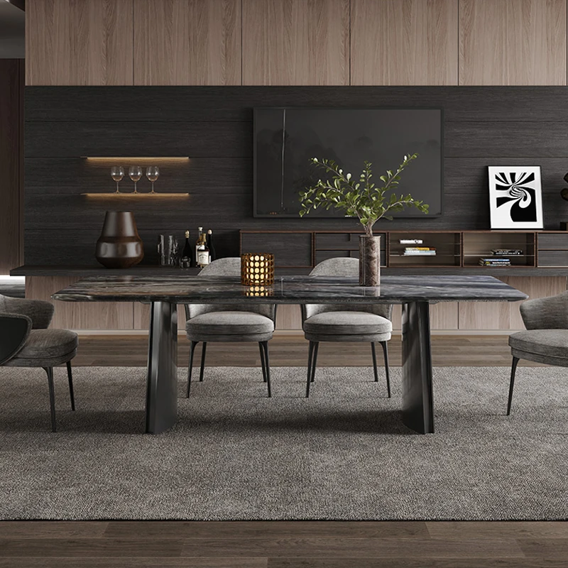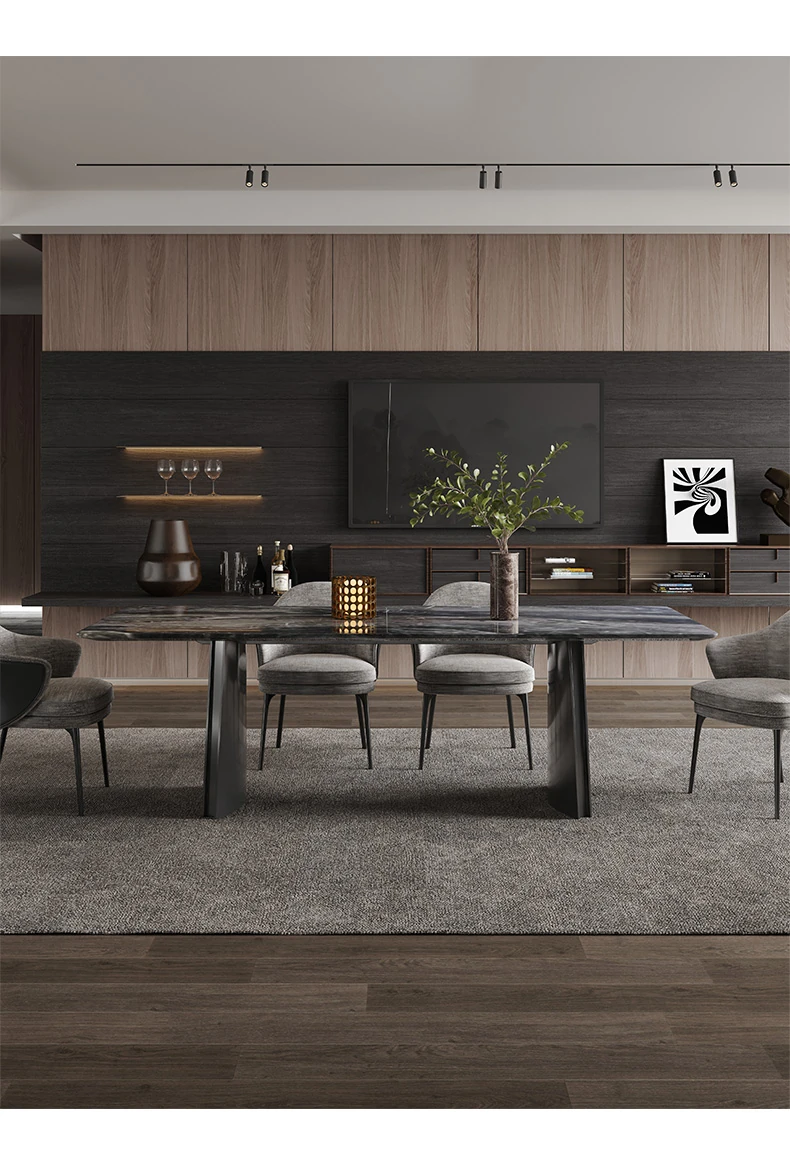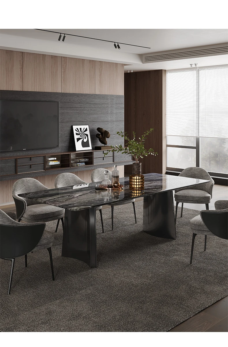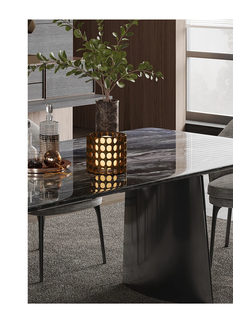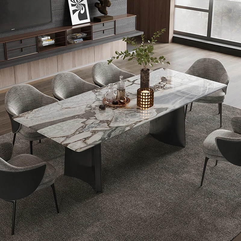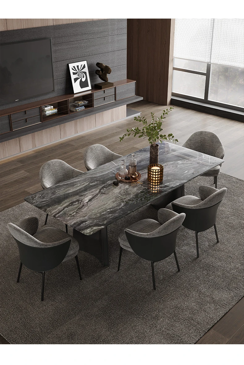 オレオグレー天然大理石ダイニングテーブル|豪華な長方形デザイン|イタリアンスタイルのモダンな住空間を演出|洗練されたデザイナー家用家具