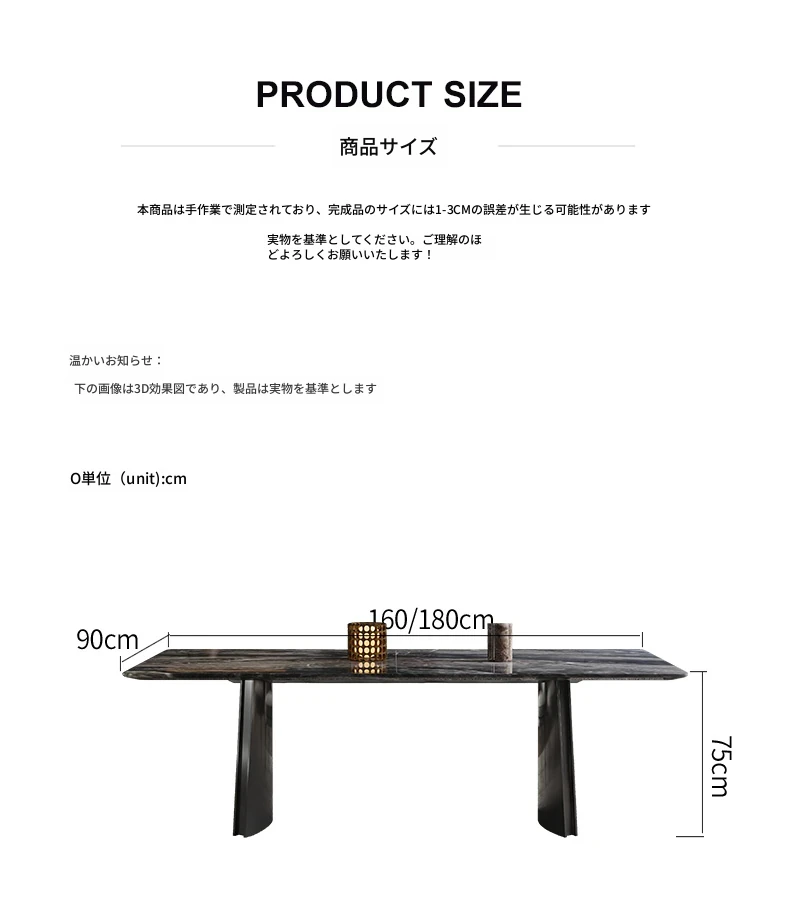 オレオグレー高級石/1.8メートルダイニングテーブル