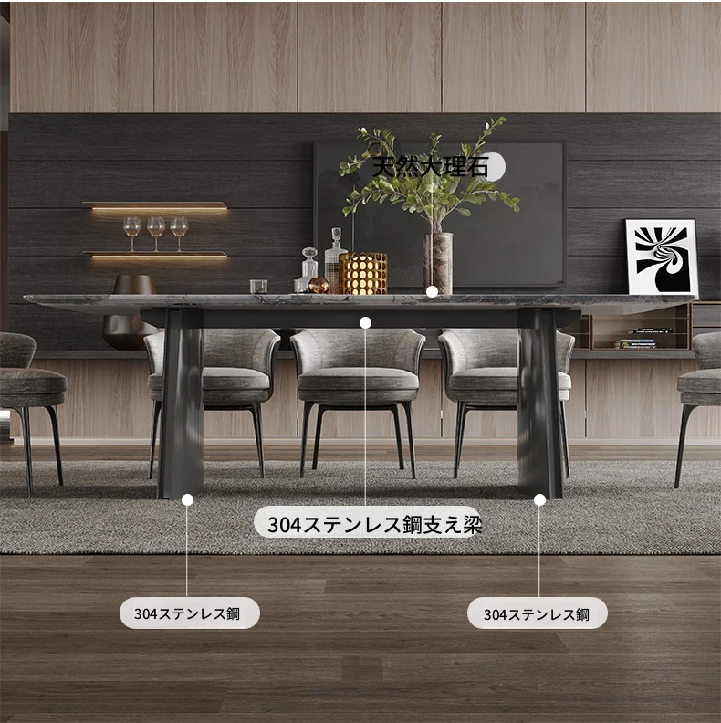 オレオグレー高級石/2.0メートルダイニングテーブル