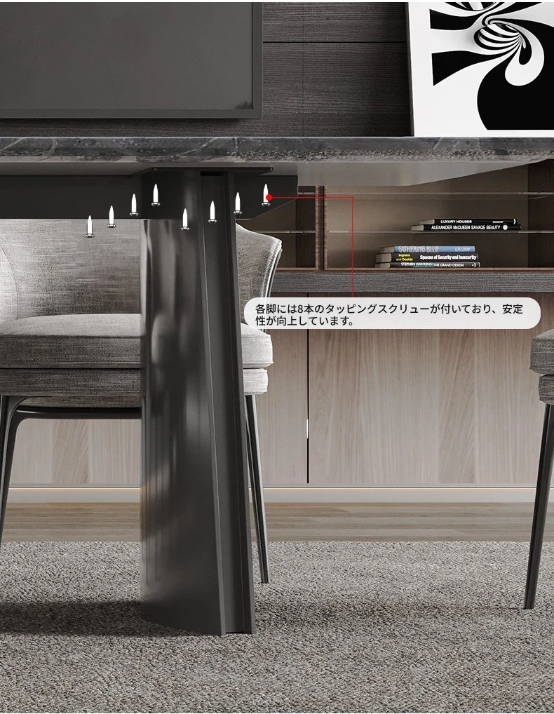 オレオグレー高級石/2.2メートルダイニングテーブル