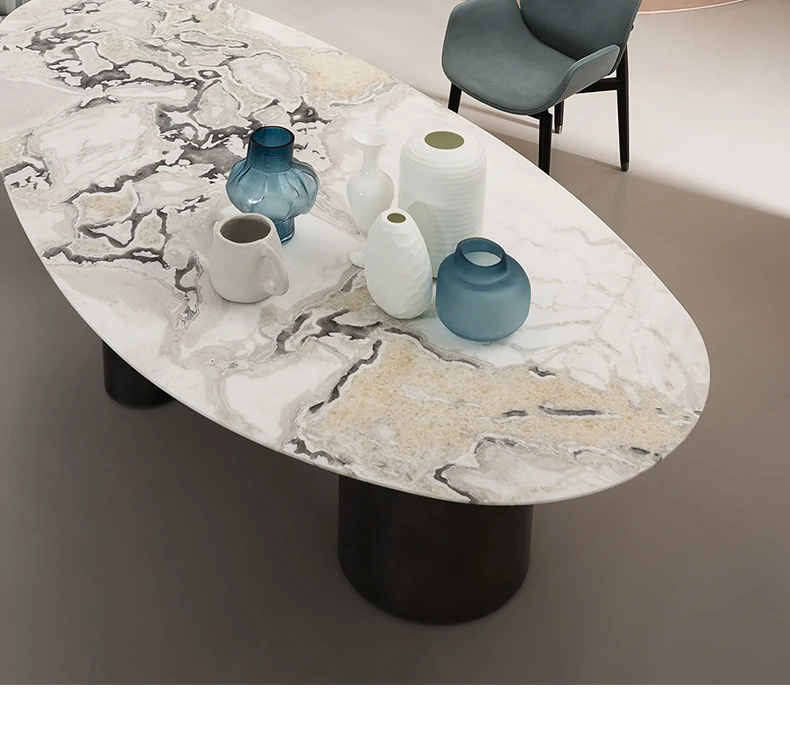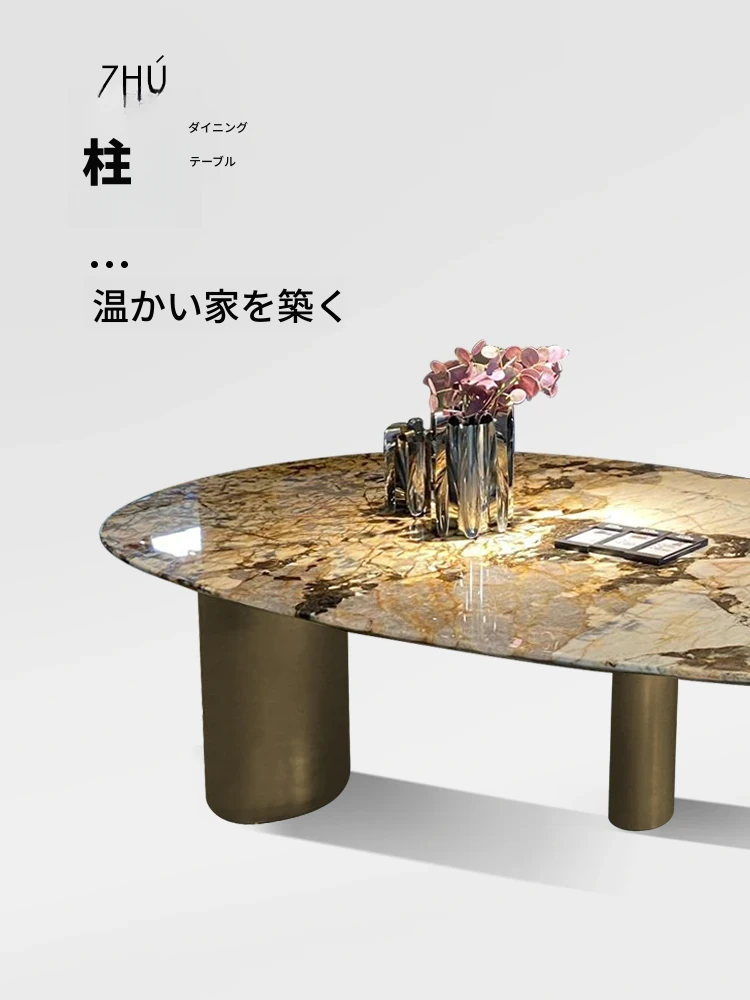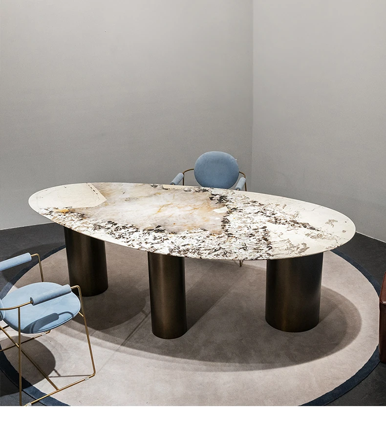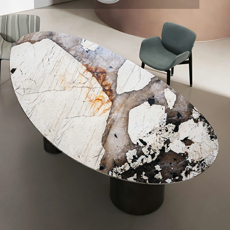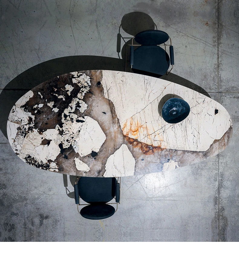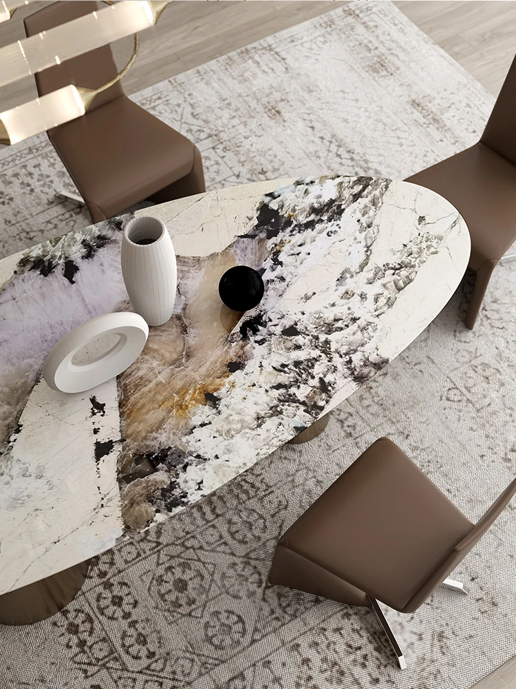 パンドラ豪華石製ダイニングテーブル|イタリアンラグジュアリー|水滴型エレガントオーバル|ヴィラや大平面に最適な大理石製食卓|家庭用にもぴったり!