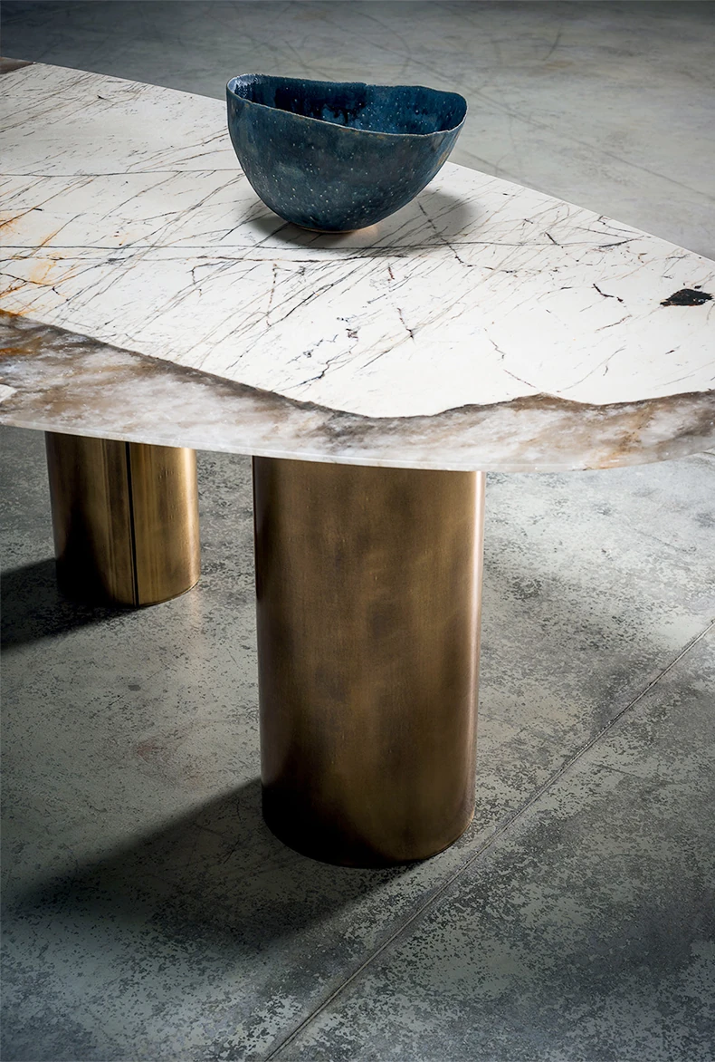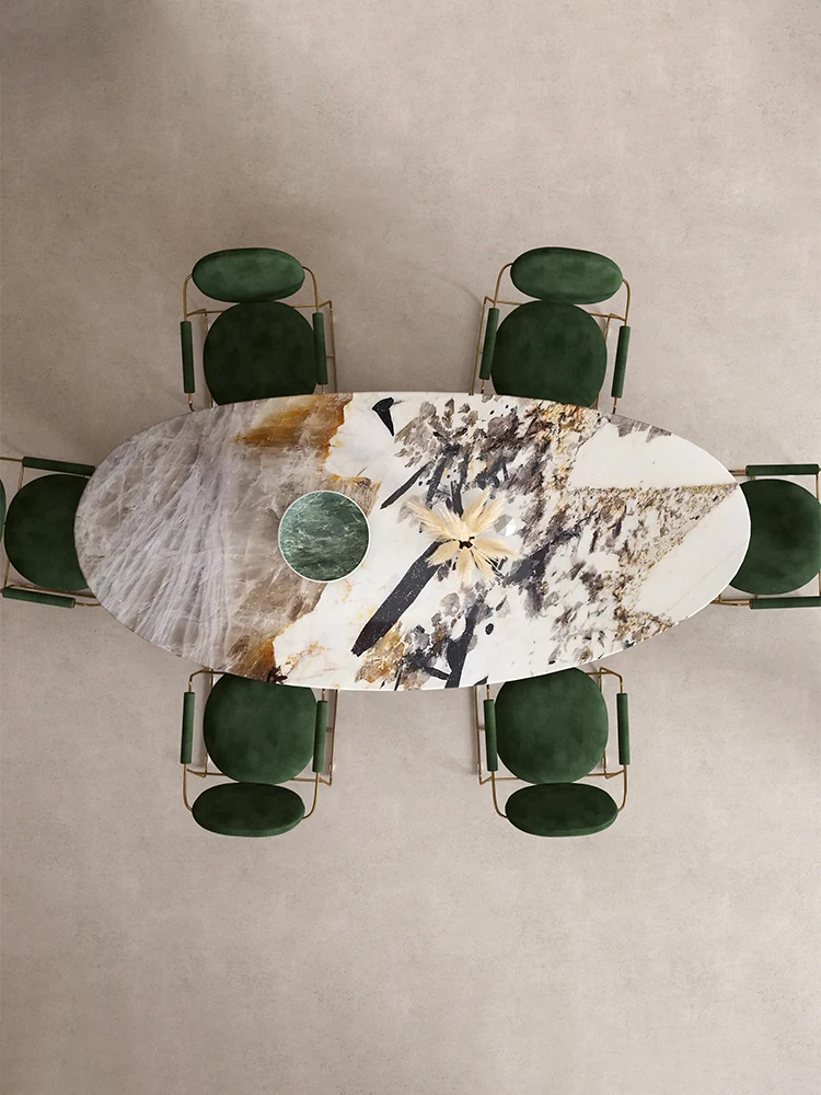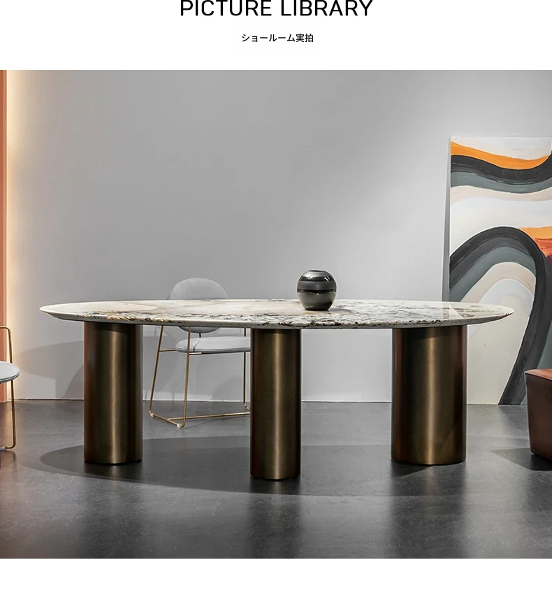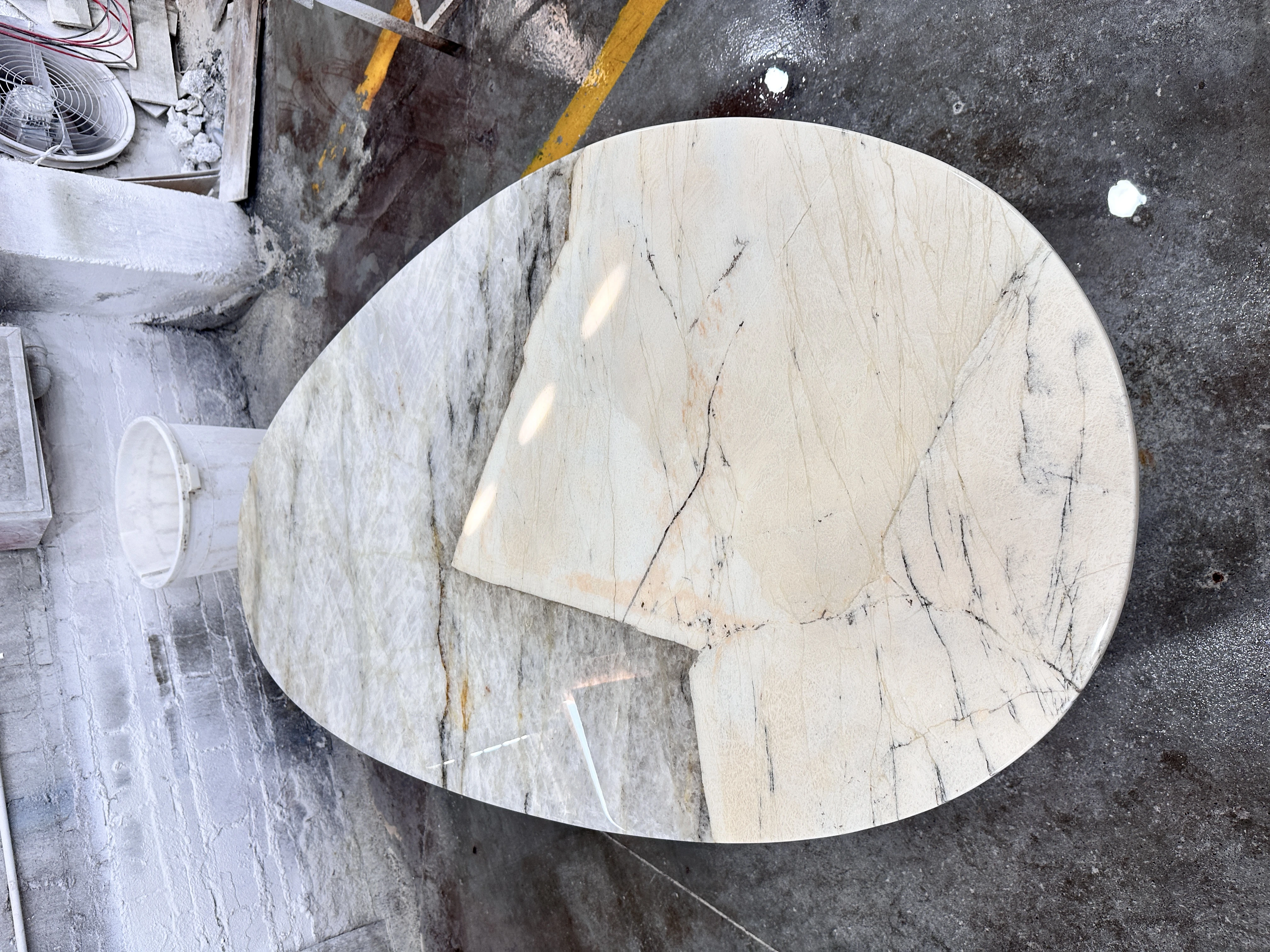 パンドラ豪華石製ダイニングテーブル|イタリアンラグジュアリー|水滴型エレガントオーバル|ヴィラや大平面に最適な大理石製食卓|家庭用にもぴったり!