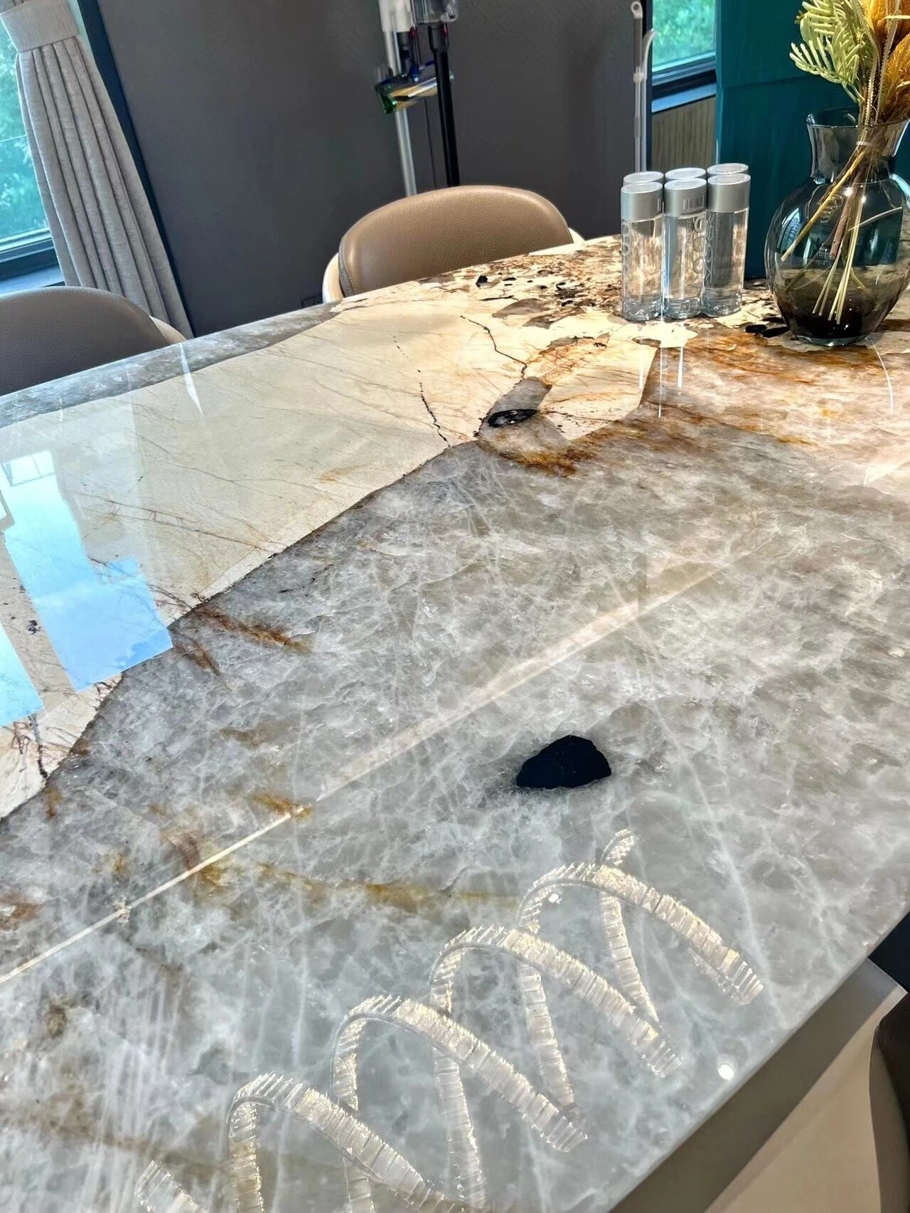 イタリア輸入パンドララグジュアリー石材ダイニングテーブル2.4x1M