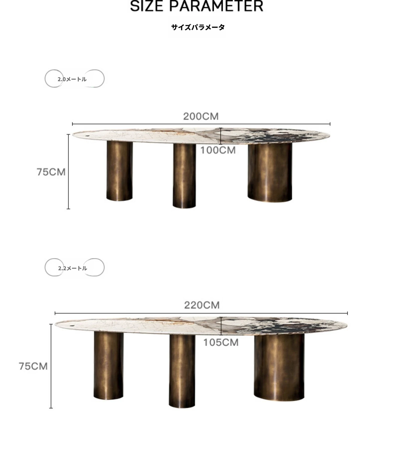 イタリア輸入パンドララグジュアリー石材ダイニングテーブル2.2x1M