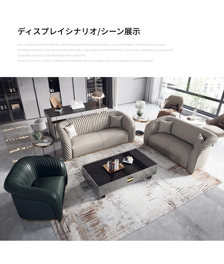 後現代の本革ソファー イタリアンラグジュアリー 上質なトップグレインレザー使用 ヴィラのリビングにぴったり 大型サイズ 123ソファーコンビネーション家具 最高の快適さと洗練されたデザインをお届けします!