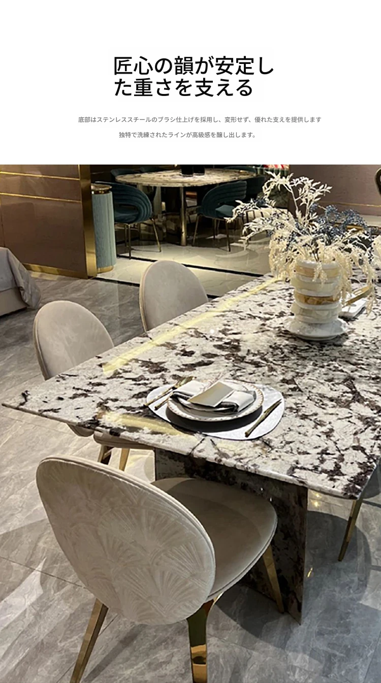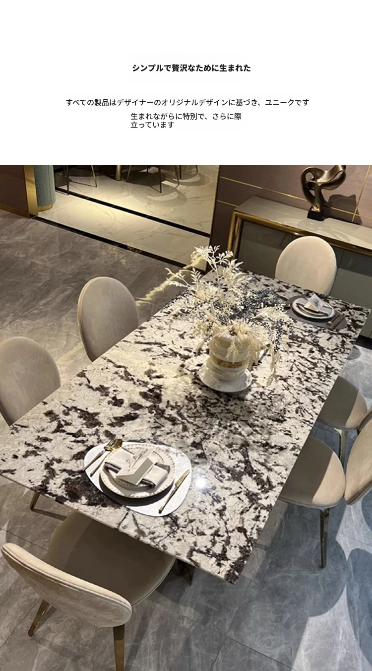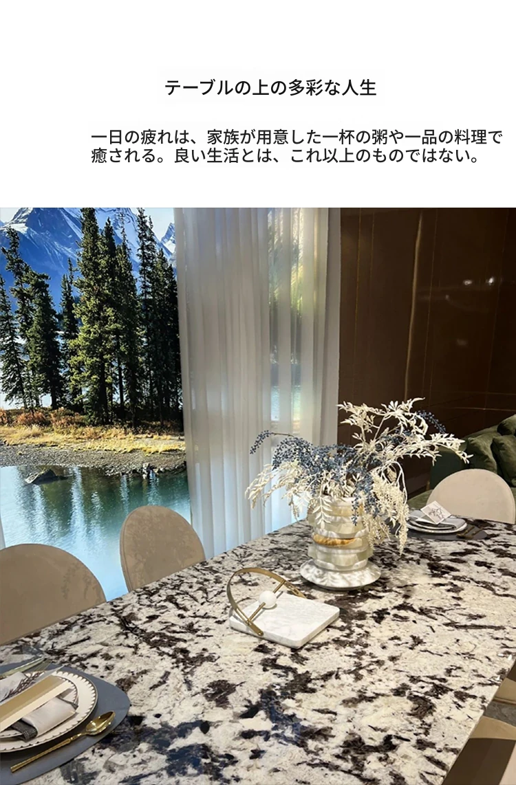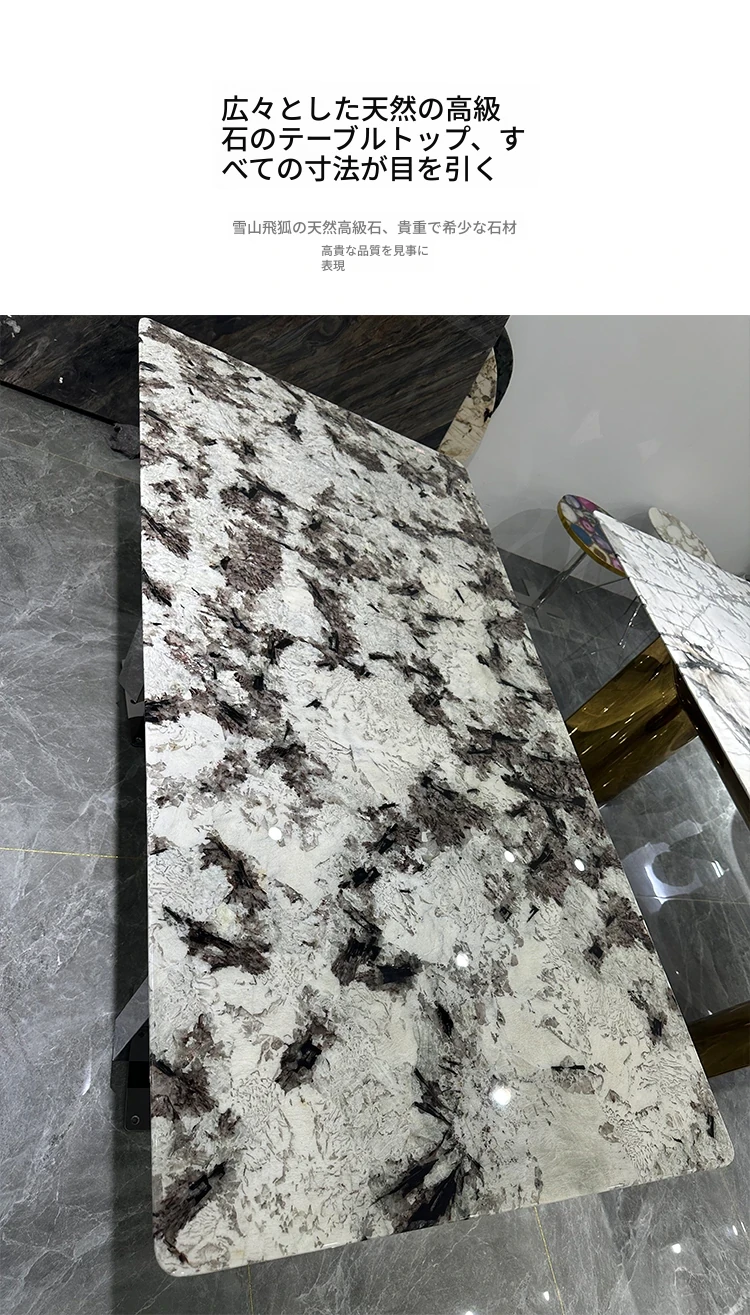 高級感あふれる天然雪山ラン奢石ダイニングテーブル - イタリアンスタイルの洗練されたデザイン、雪山飛狐大理石使用で、美しい食卓を演出します!
