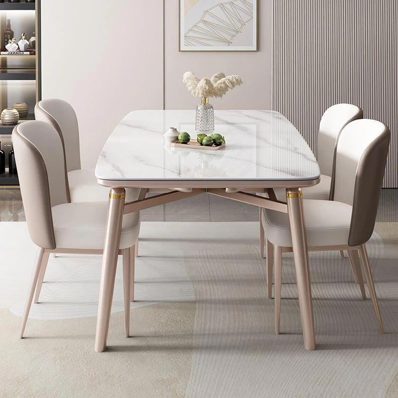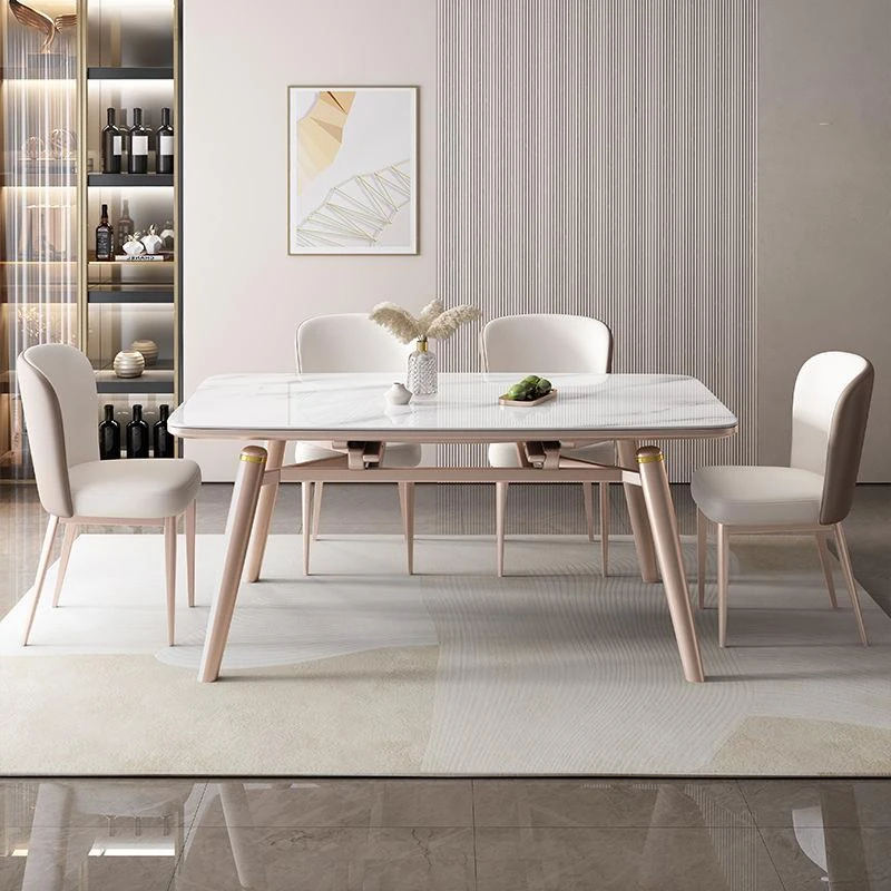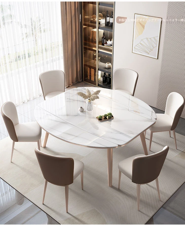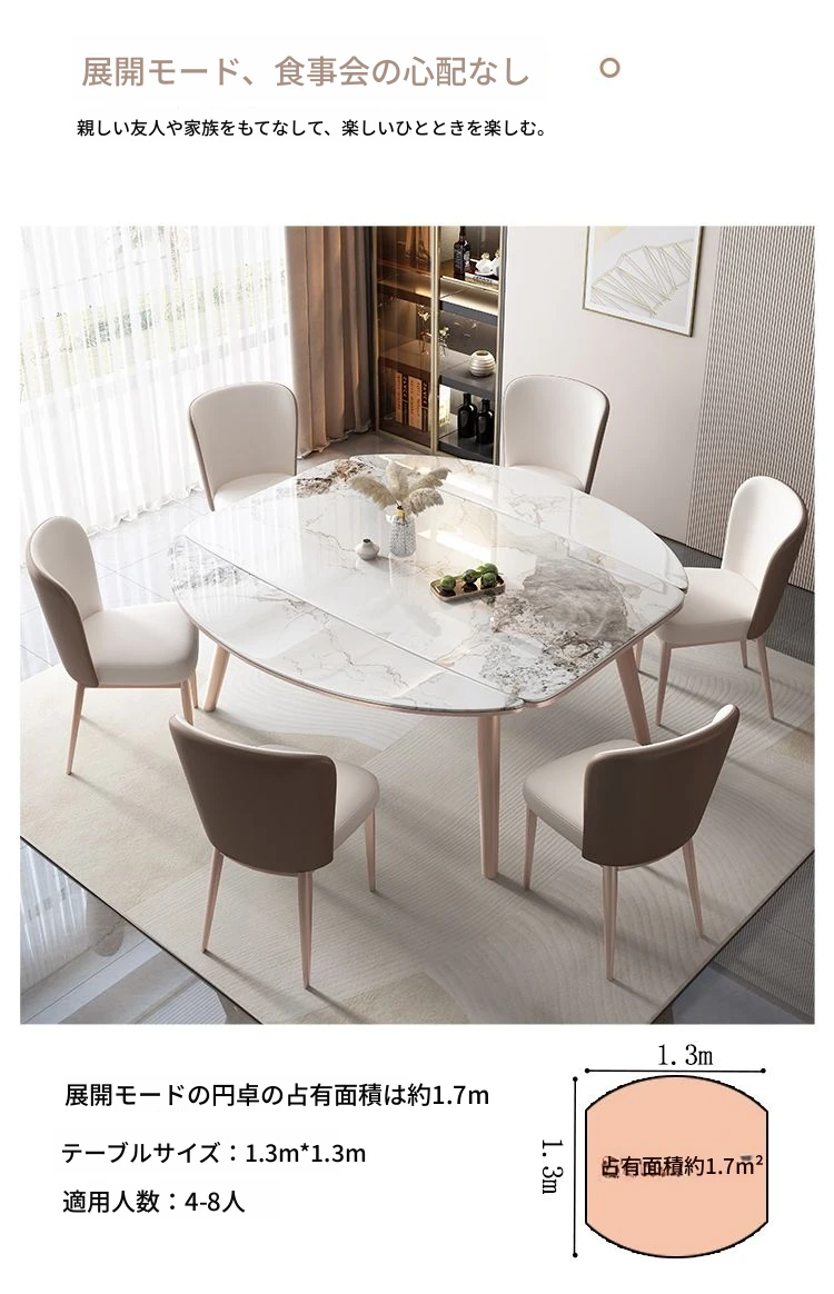 高級岩板付きの実木ダイニングテーブル - 小さな家にぴったりの伸縮可能な強化底板設計!家族で使える四角形・円形両用のダイニングセット。スタイリッシュで機能的な食卓をお楽しみください!