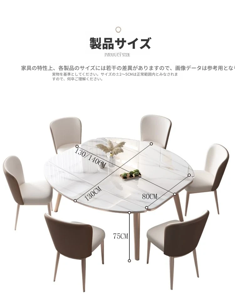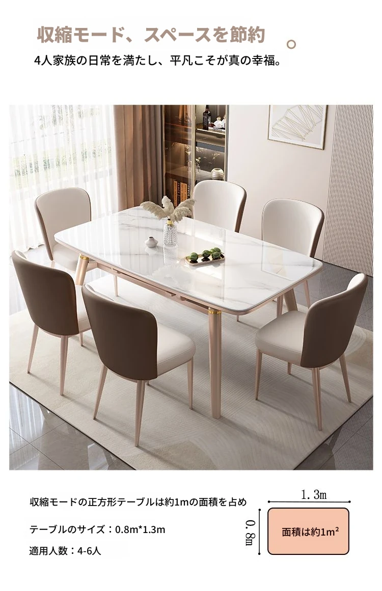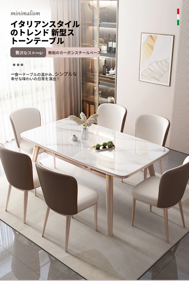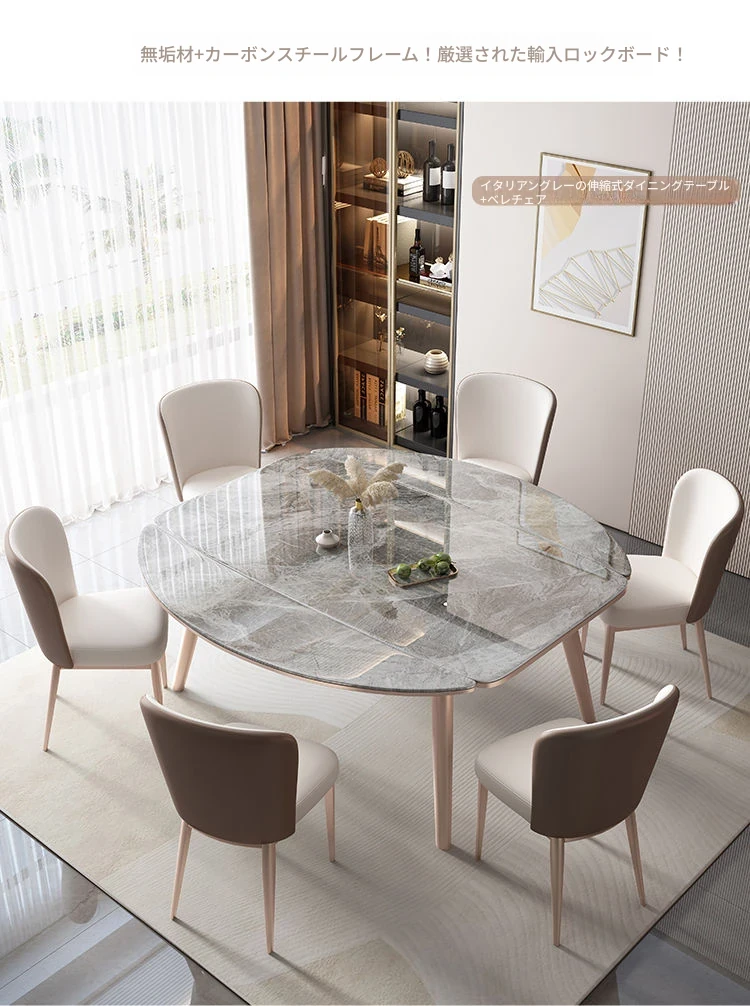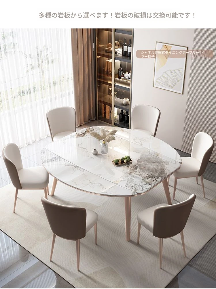 【12mm岩板】伸縮式ダイニングテーブル+広派椅子*6