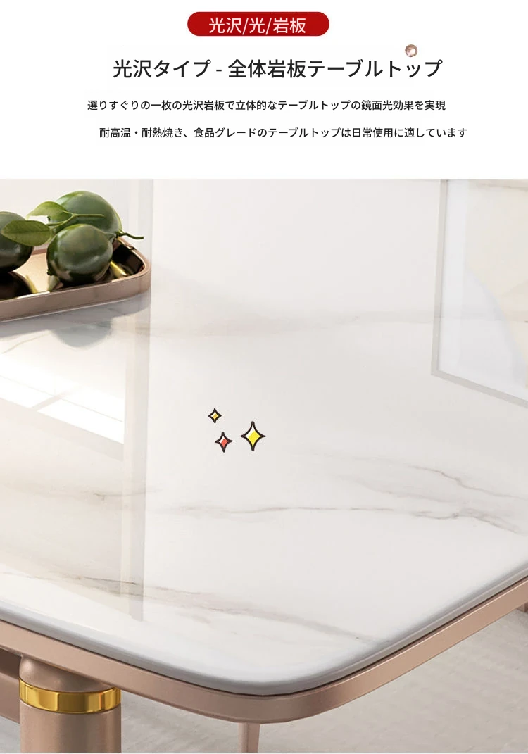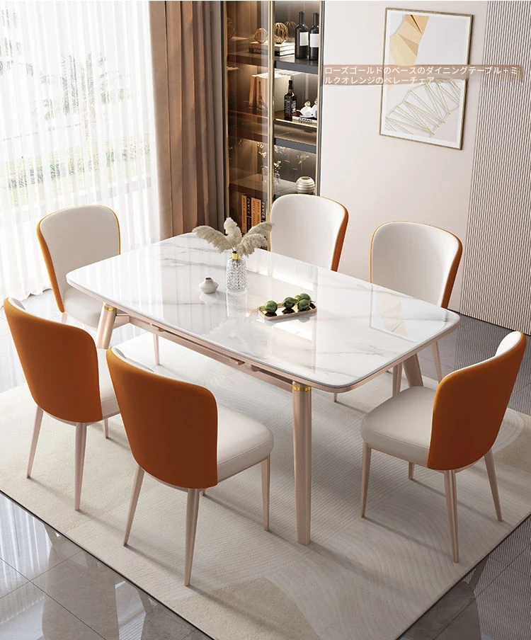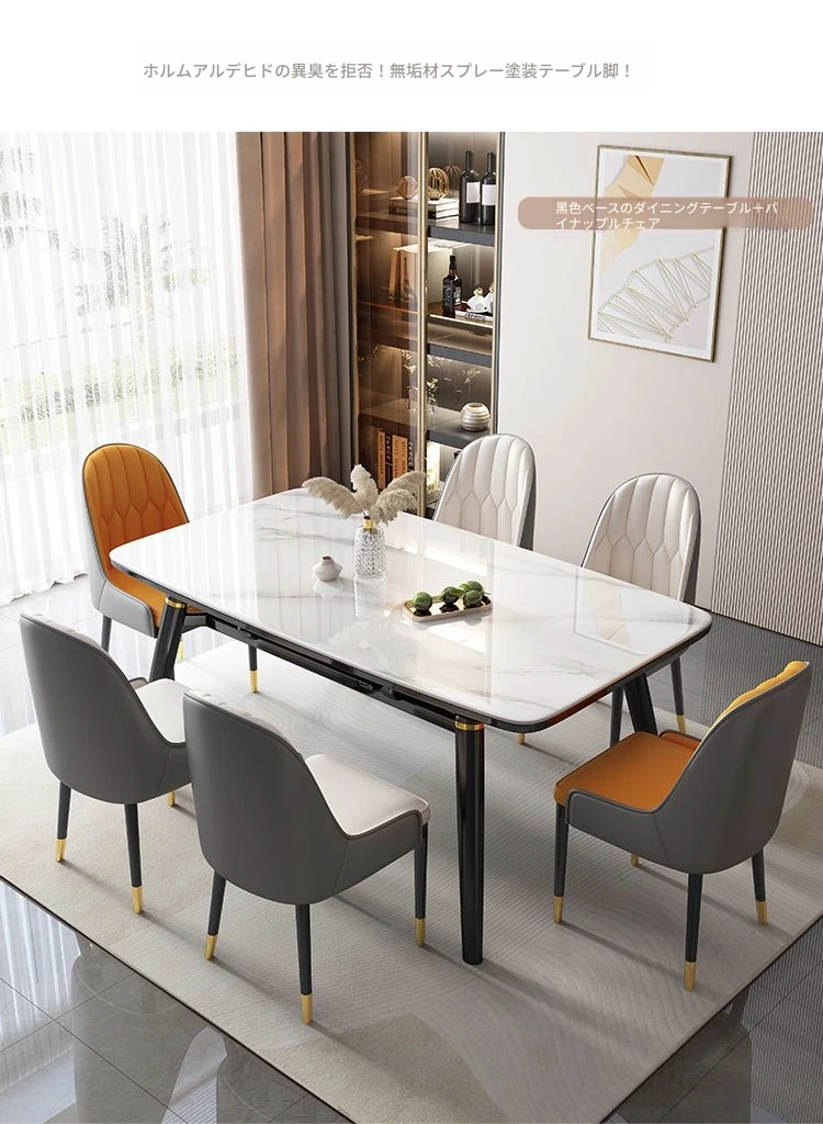 【12mm岩板】伸縮式ダイニングテーブル+パイナップル椅子*6