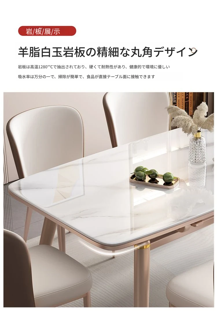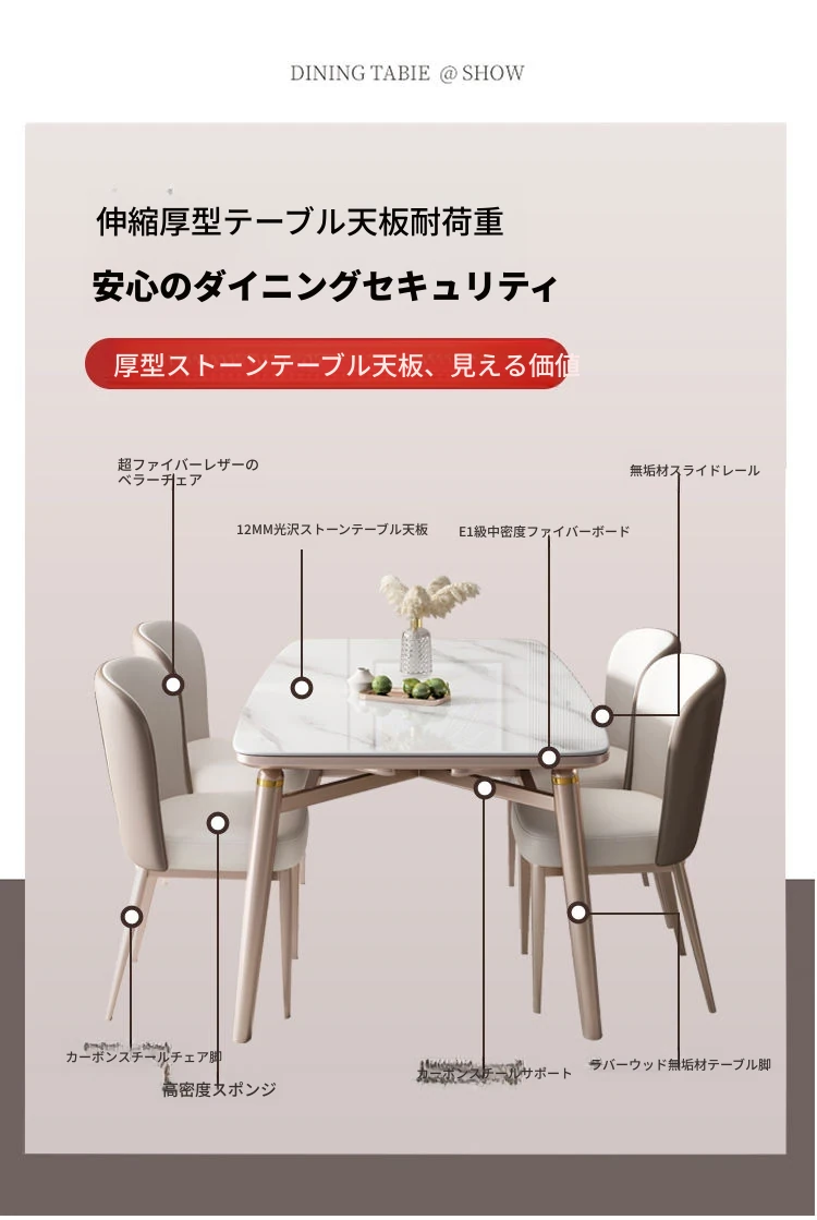 【12mm岩板】伸縮式ダイニングテーブル+広派椅子*4