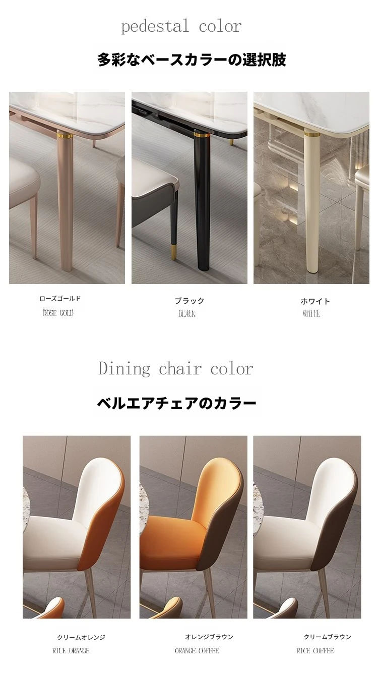 【12mm岩板】伸縮式ダイニングテーブル+ベイラー椅子*6
