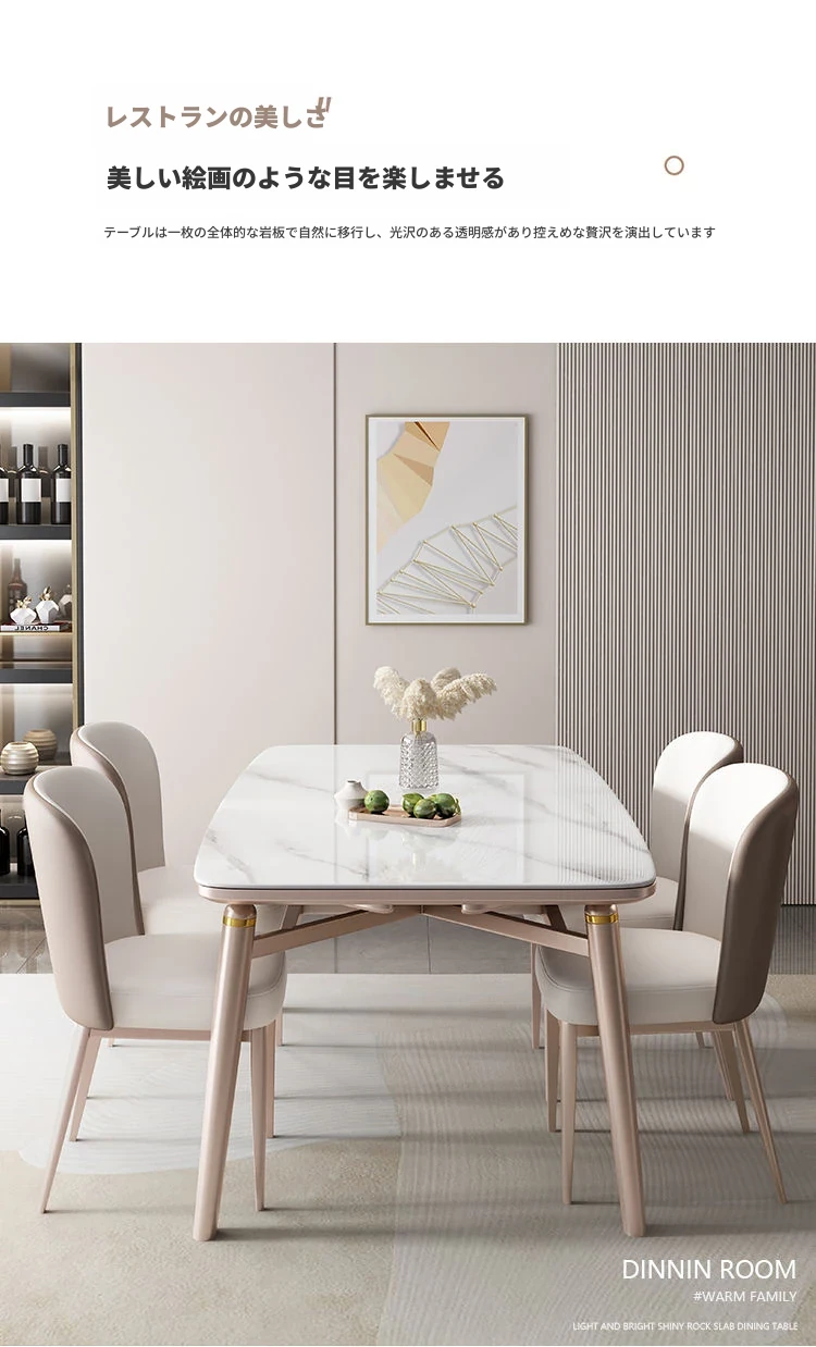 【12mm岩板】伸縮式ダイニングテーブル+パイナップル椅子*4