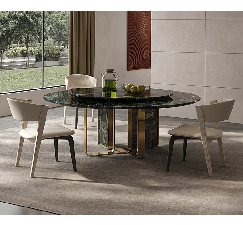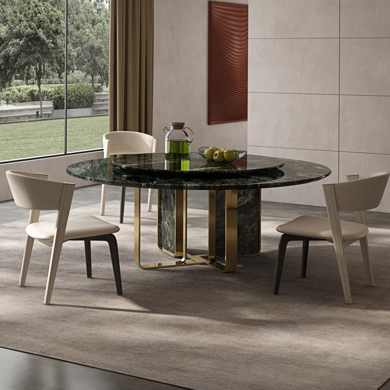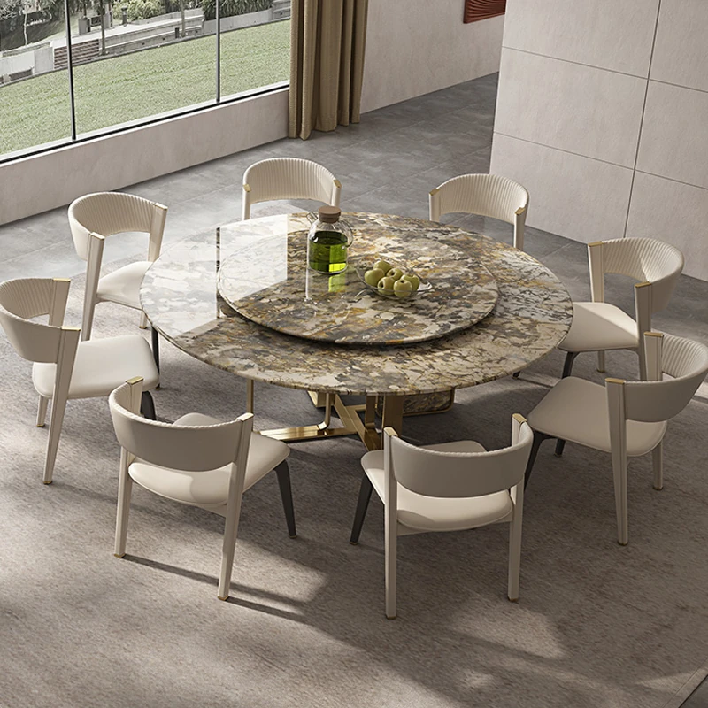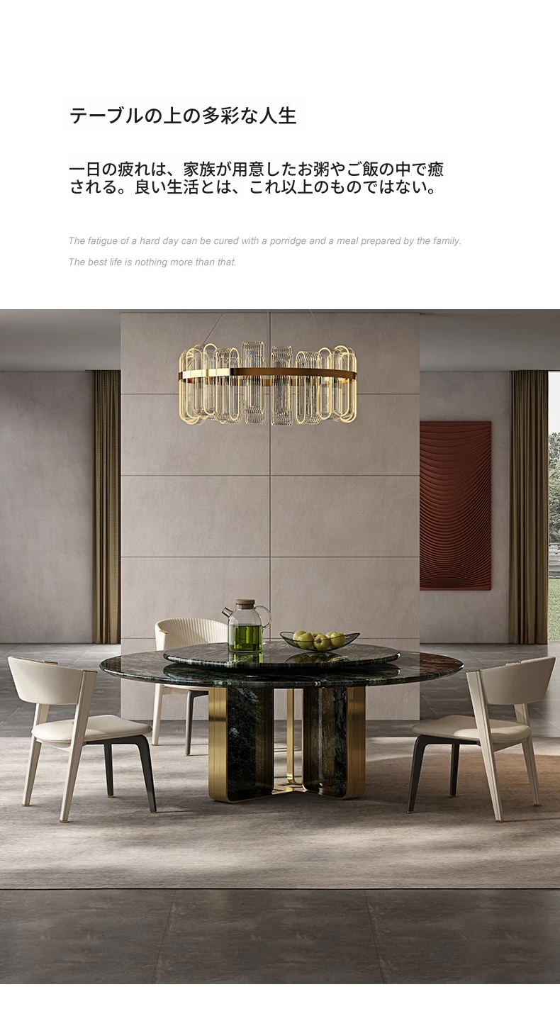 雪山飛狐の天然高級大理石製ラウンドダイニングテーブル - モダンでラグジュアリーなデザイン、大邸宅にぴったりのハイエンドモデル!特別なひとときを演出します。