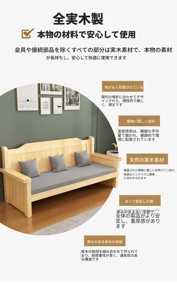 高品質な無垢材ソファチェア - 冬も夏も快適!小さなスペースにぴったりなバルコニーや寝室、リビングに最適な3人掛け・4人掛けのデザイン。リラックスできる時間を提供します。