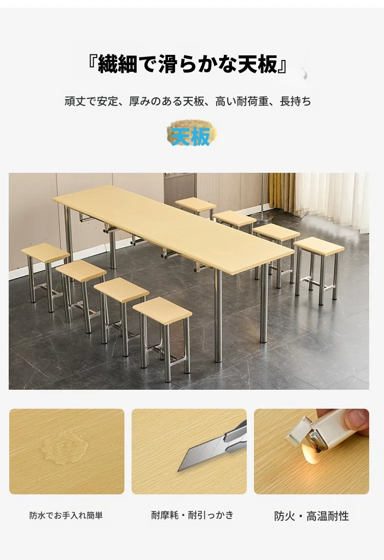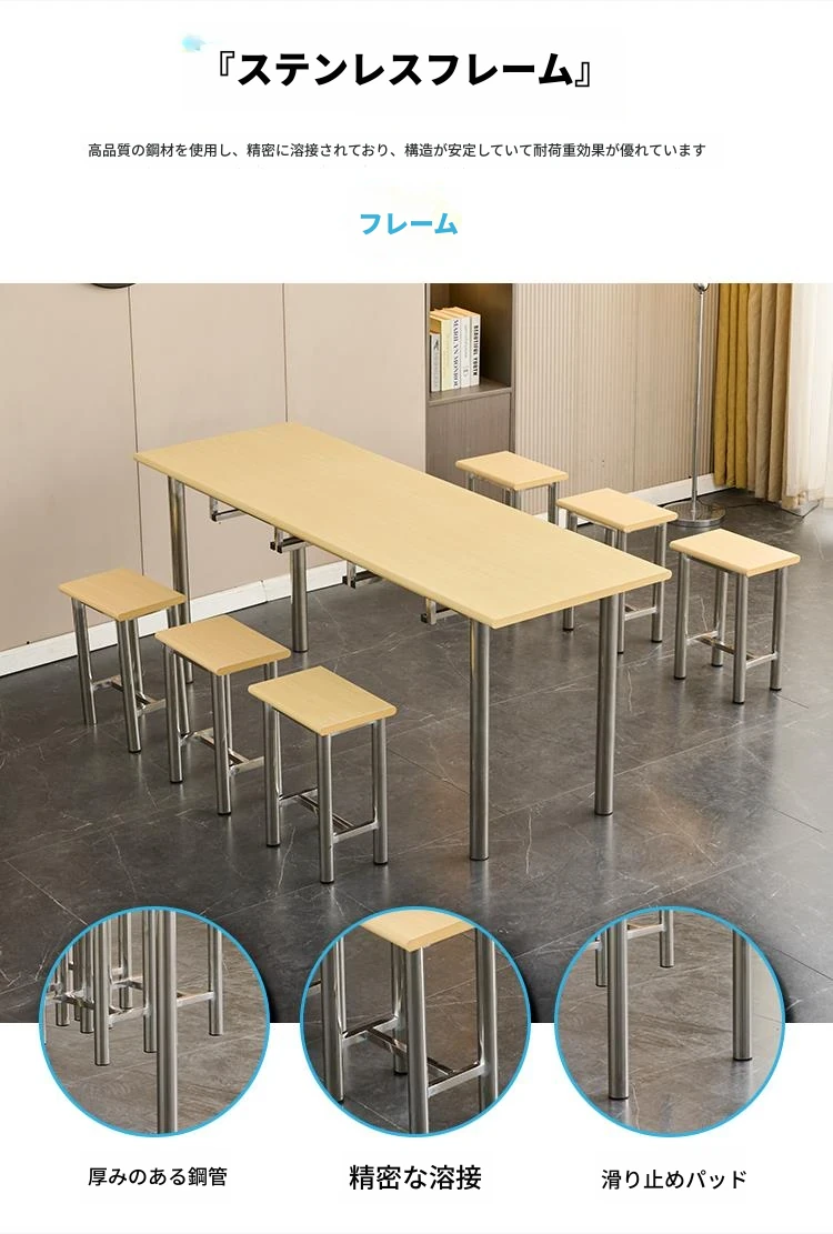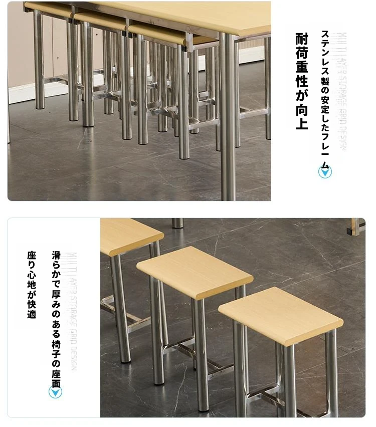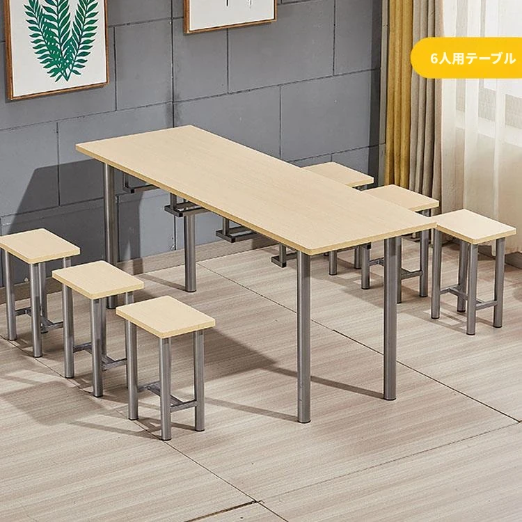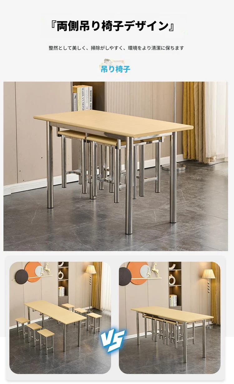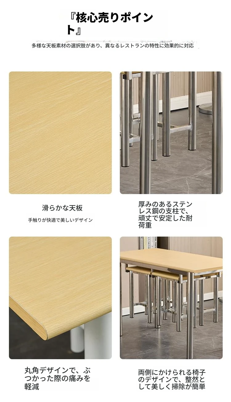 ステンレス製社員食堂テーブル&チェアセット - 4人用工場・レストラン向け、耐久性抜群でお手入れ簡単!快適な食事空間を提供し、社員のリラックスをサポートします。