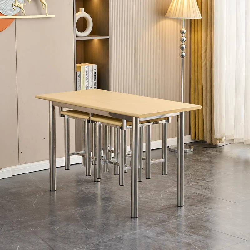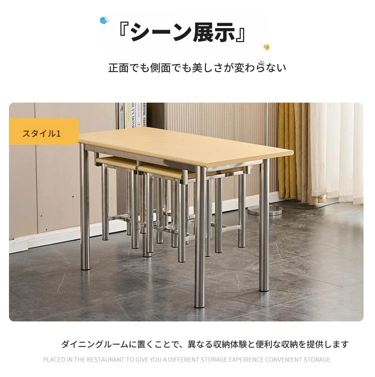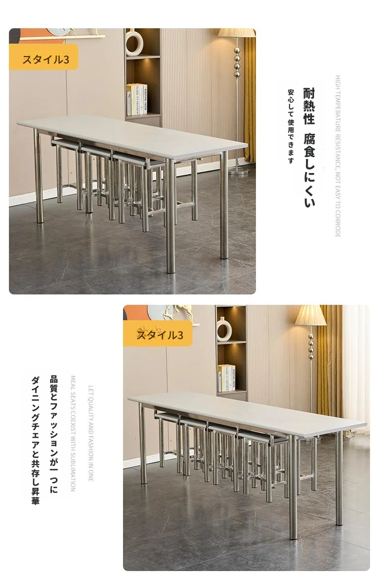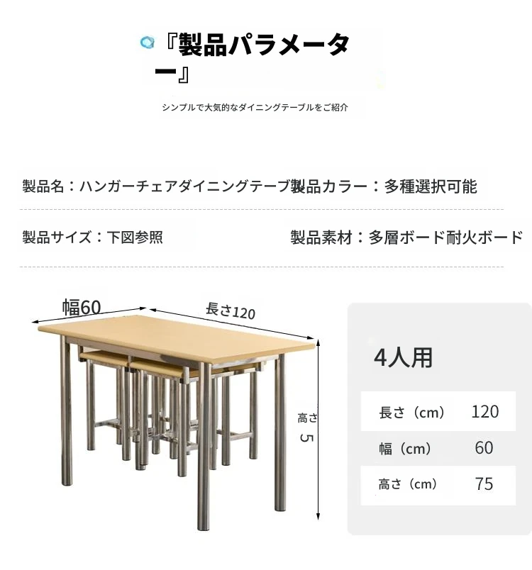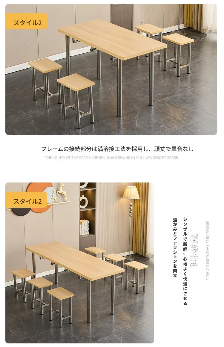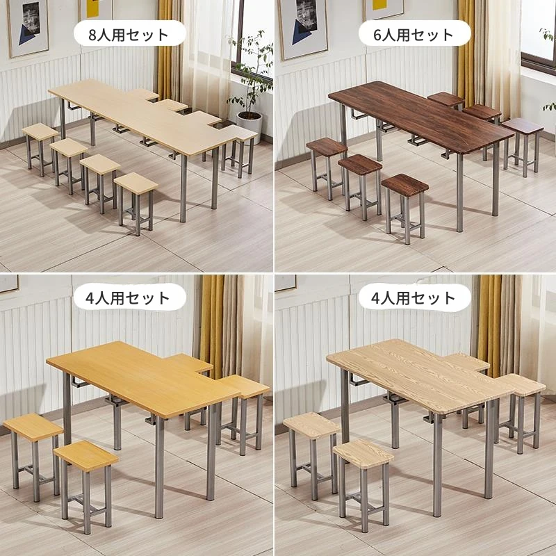 ステンレス製社員食堂テーブル&チェアセット - 4人用工場・レストラン向け、耐久性抜群でお手入れ簡単!快適な食事空間を提供し、社員のリラックスをサポートします。