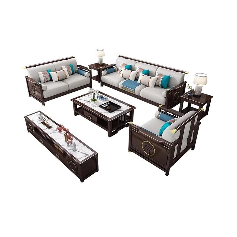 新中式スタイルの全実木製ソファセット - 小さなラバーウッド製の農型デザイン、冬も夏も快適に使えるシンプルで上品な貴族風ソファ!あなたのリビングをスタイリッシュに演出します。