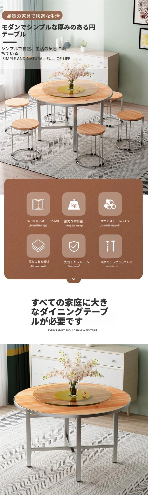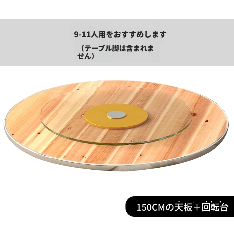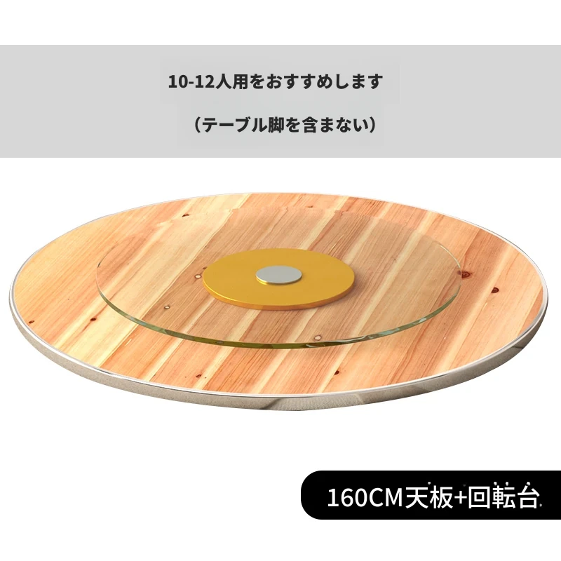 厚手作りの大きな円形テーブル天板、家庭用実木製円形ダイニングテーブル、10人対応、1L5人用の強化ガラス回転プレート付き、レストランや農家に最適!おしゃれで実用的な食卓をお楽しみください!