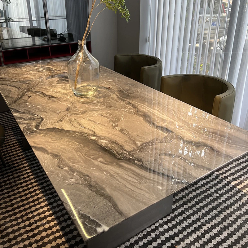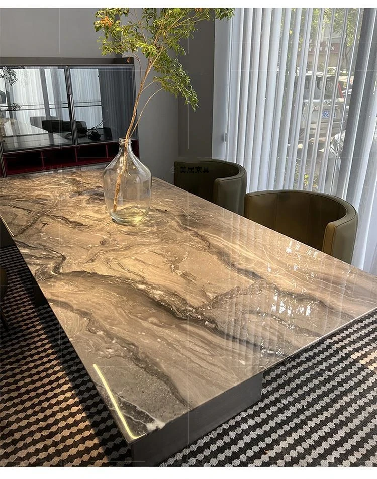 ヴェネチアブラウン天然大理石高級イタリアンミニマルダイニングテーブル - スタイリッシュで洗練されたデザイン、小スペースにも最適!上質な食事体験をお楽しみください。