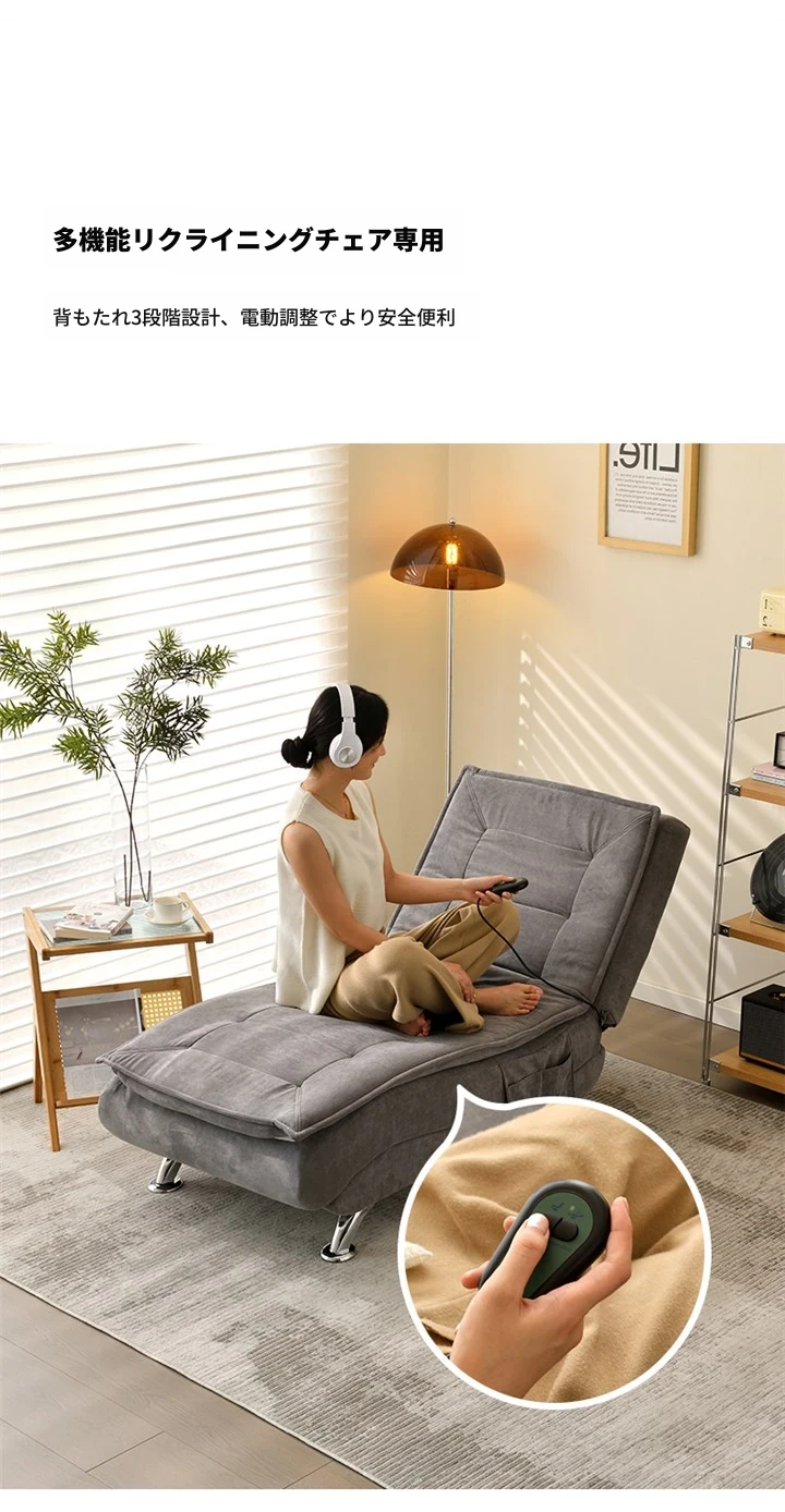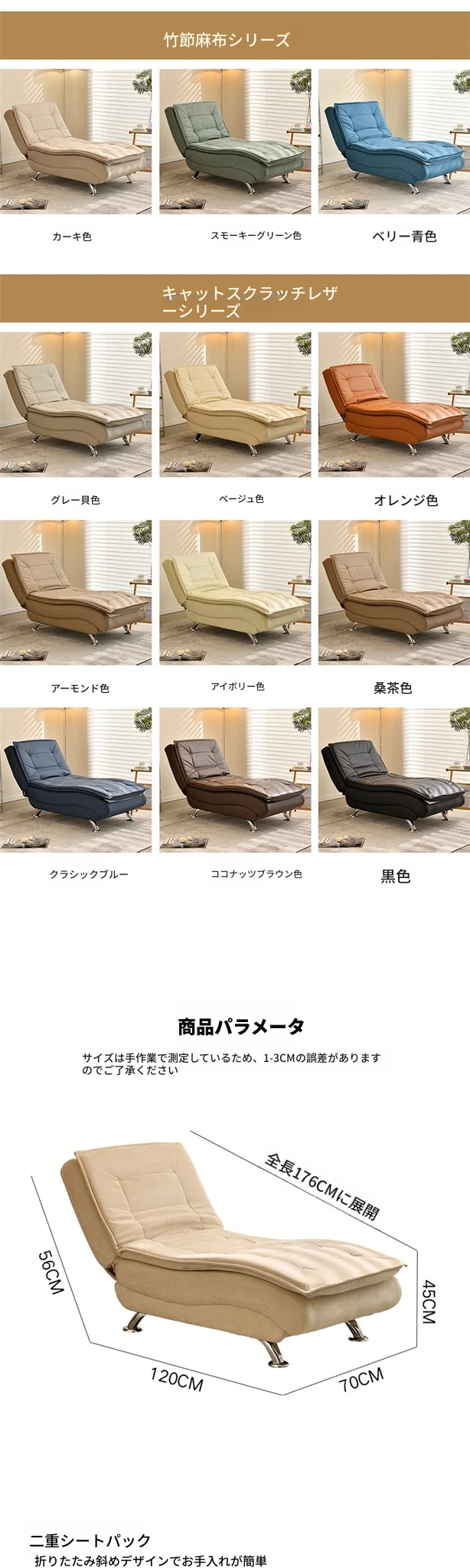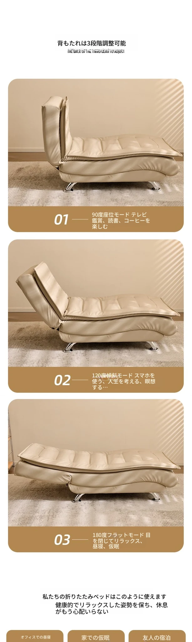 多機能リクライニングチェア|省スペースに最適な一人用ベッド|居間やバルコニーでの快適な昼寝を実現|折りたたみ式で便利なラウンジチェア!