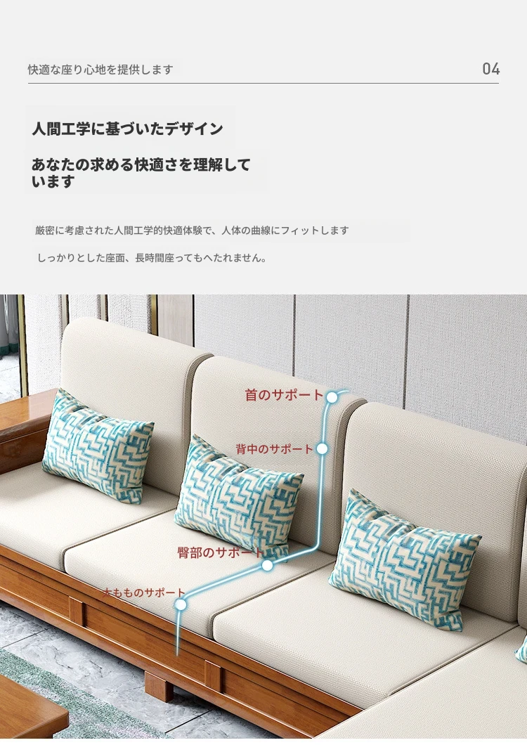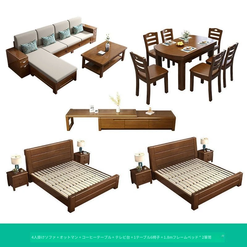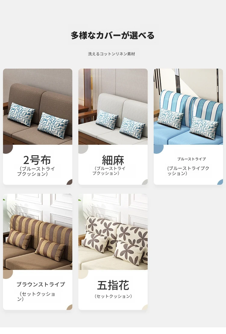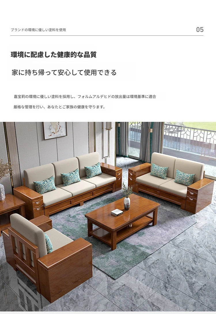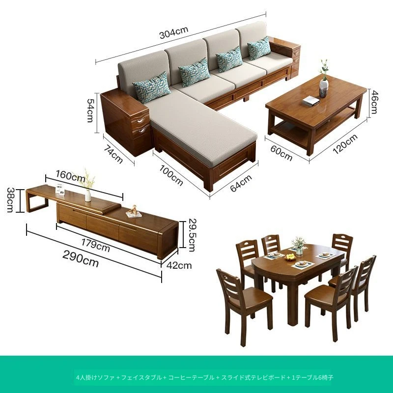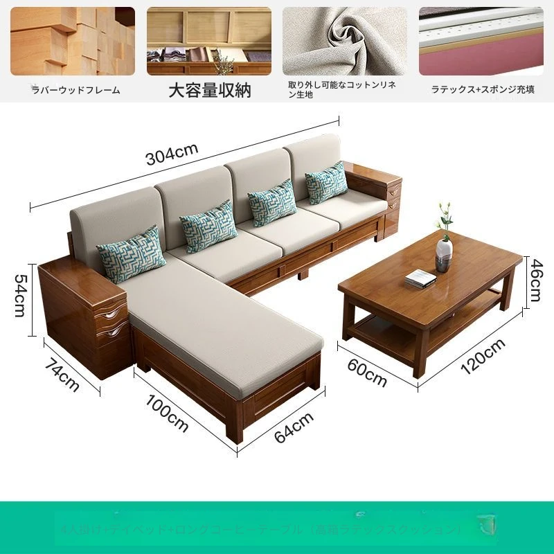 冬夏兼用の実木ソファセット|コンパクトな小型住宅に最適な新中式デザイン|高箱収納付きでスッキリ収納!木製家具で温もりのある空間を演出します。